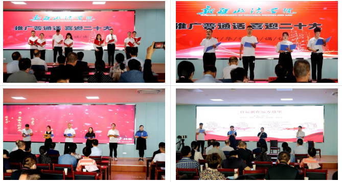 中华五千年的悠久历史,孕育了底蕴深厚的民族文化。醉人的金秋如约而至,“推广普通话,喜迎二十大”经典诵读像一阵清风吹入学院的校园。10月2日上午,科创楼报告厅内传出朗朗的经典诵读声,老师们用标准的普通话、规范的语言文字、饱满的激情表演着一个又一个精彩节目。