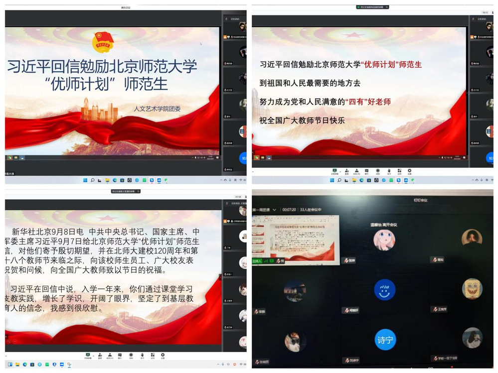 通过学习习近平总书记给北京师范大学“优师计划”师范生的回信精神,不仅夯实了同学们牢记使命的决心,激发了同学们的责任意识,营造了注重职业归属感、荣誉感和责任感的氛围,更是对我们新时代青年的鼓舞,我们要增长传道授业解惑本领,学好自己的专业,让自己的青春在祖国需要的地方绽放!