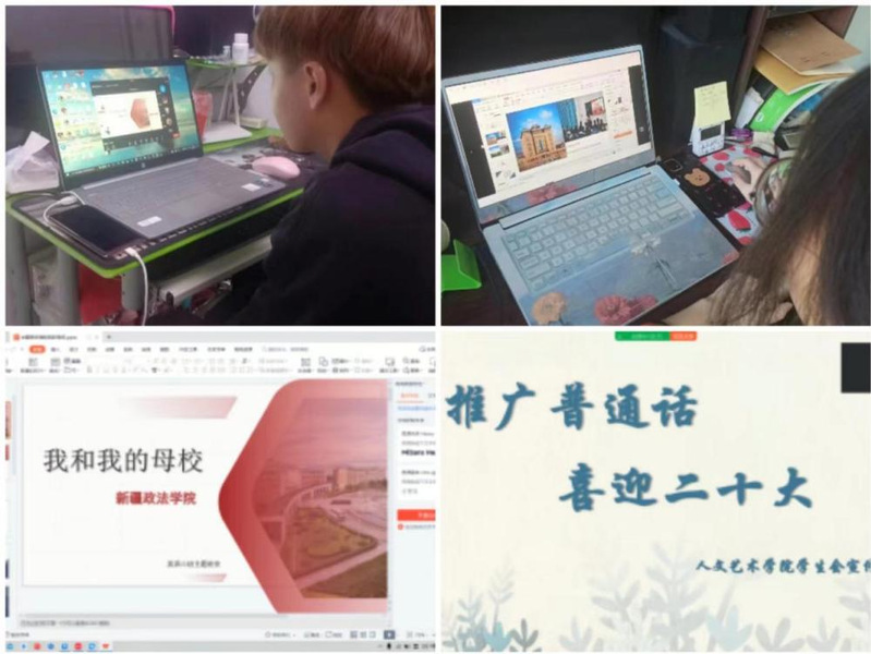 关于班级建设方面,本班文化建设丰富多彩,面向班级所有线上学生,使其置身于浓厚的班级文化氛围中。例如,本班开展了“推广普通话,喜迎二十大”为主题,通过线上主题班会、经典朗诵、配音和书法,使英语三班同学更加团结同时,也提高了自身的学习能力。