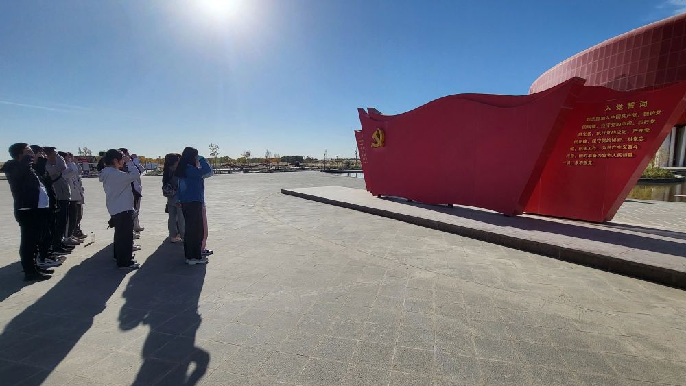 缅怀革命烈士,深化爱国主义教育。19日下午,党员教师们整齐列队,怀着崇敬的心情走进了第三师图木舒克市红色爱国教育基地—唐王城千年屯垦文化体验中心。基地内陈列着丰富的历史文物和详实的历史资料,生动地展示了中国共产党领导人民进行革命斗争的光辉历程。在讲解员的引导下,教师们认真聆听每一段历史故事,仔细观看每一件展品,深刻感受到了革命先烈的英勇无畏和坚定信念。参观过程中,党员教师们不时驻足交流,分享自己的感悟和体会。他们纷纷表示,通过这次参观学习,更加深刻地理解了中国共产党为民族独立和人民幸福所作出的巨大牺牲和贡献,也更加坚定了为党的教育事业奋斗终身的决心。