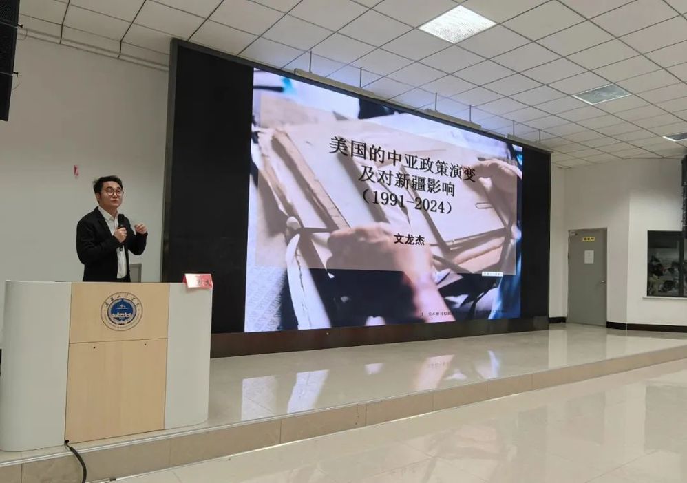 文龙杰博士凭借深厚的学术功底,从历史、现实与地缘政治多个维度深入剖析,为学院全体师生清晰呈现了美国中亚政策的演变脉络及其对新疆的具体影响。文龙杰博士指出,在当前复杂多变的国际形势下,我们必须保持高度警惕,坚决维护国家统一和民族团结。