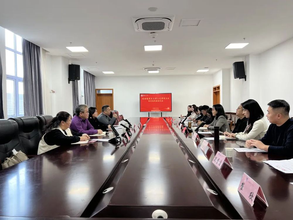 12月16日下午,塔里木大学人文学院中文系书记李雪荣一行来437必赢会员中心进行座谈调研。437必赢会员中心院长周梅主持座谈会议,学院负责人及中文系教师出席座谈。