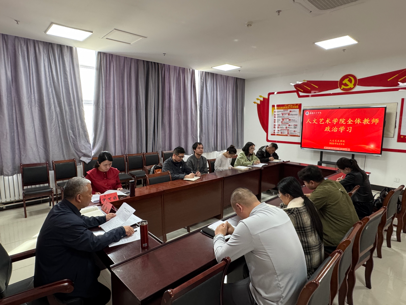 在全体教师政治理论学习环节,陈金波领学了《学院2025年宣传思想文化暨意识形态工作要点》,宋可好领学了《学院2025年维护稳定和平安建设工作方案》,使大家进一步明确了学校党委对有关工作的指示和要求,下一步工作目标和重点更加清晰。