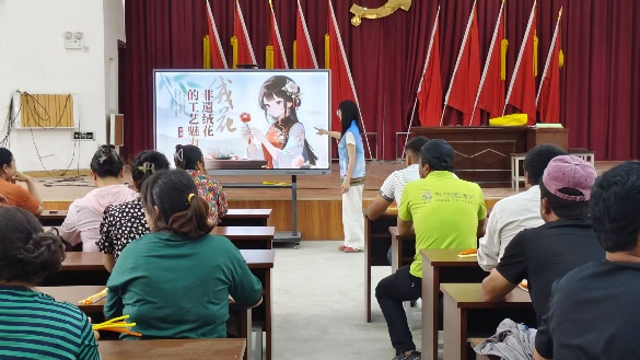 活动现场,志愿者现场讲授绒花制作技艺及其千年文化脉络,将这项国家级非物质文化遗产带进基层连队,讲解中特别强调,绒花谐音“荣华”,不仅承载着传统美学价值,更蕴含着人民对美好生活的向往。让在场群众在指尖流转的技艺与字正腔圆的语言学习中,触摸到传统文化的温度与生命力。