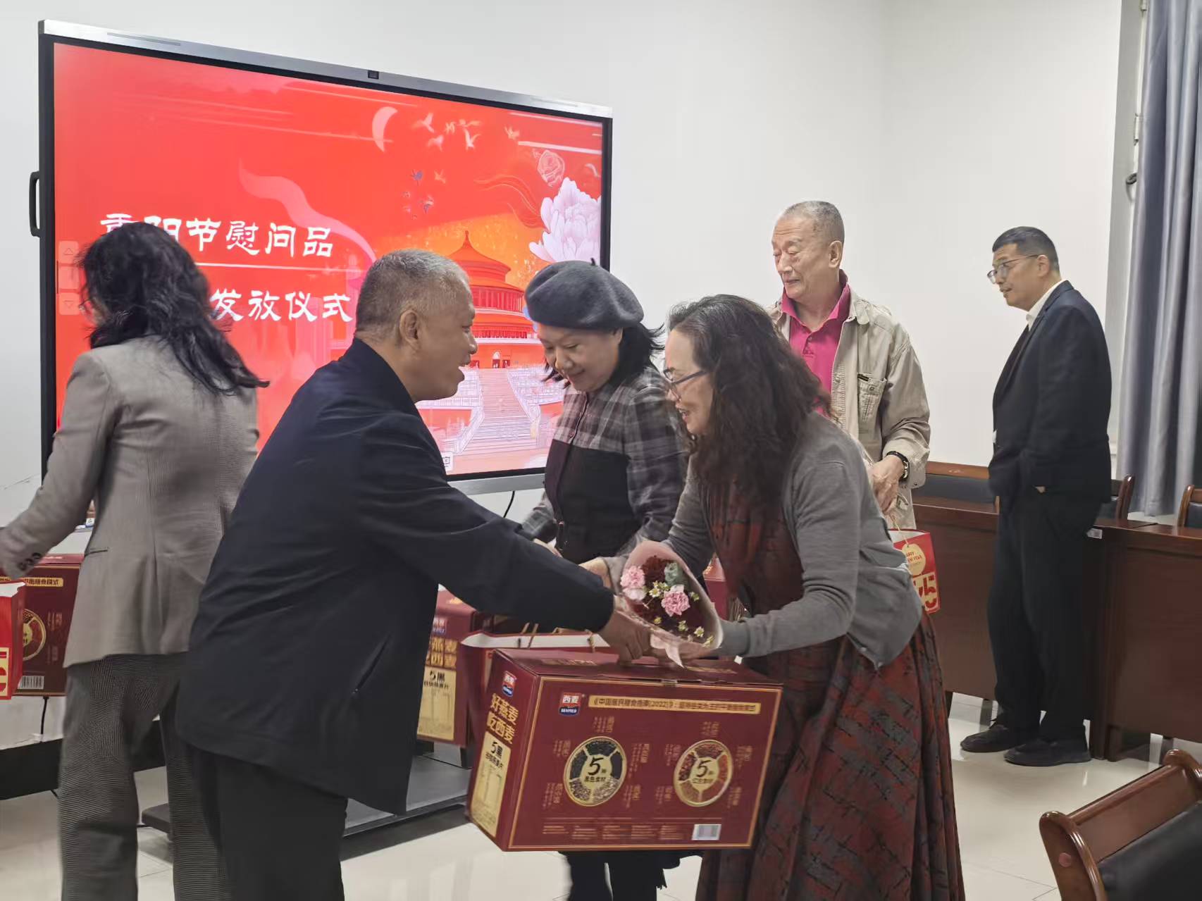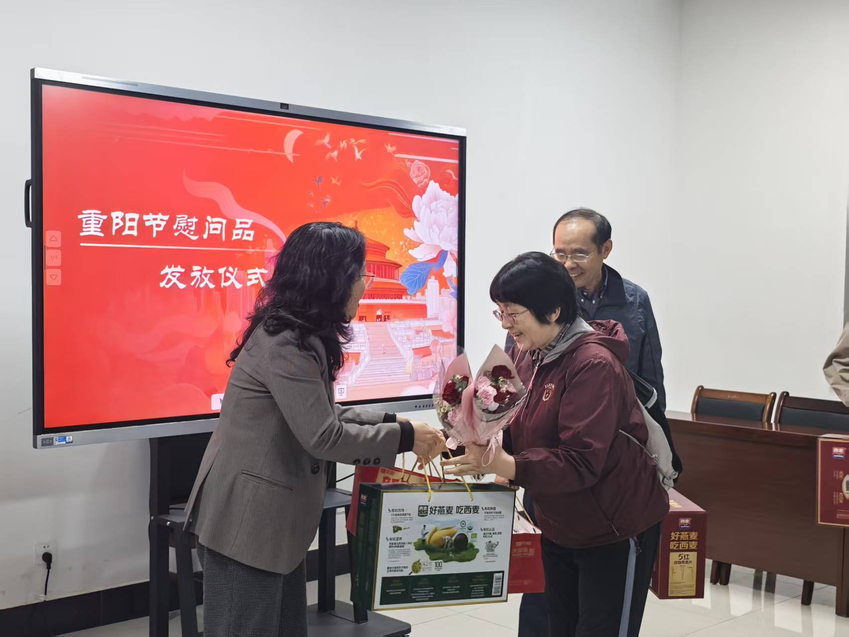 “一份慰问品,浓浓敬老情”。在重阳节慰问环节,学院领导亲手将精心定制的慰问品送到每位银龄教师手中,礼物虽轻,却承载着学院对前辈的深切关怀,让银龄教师们切实感受到 “家” 的温暖。